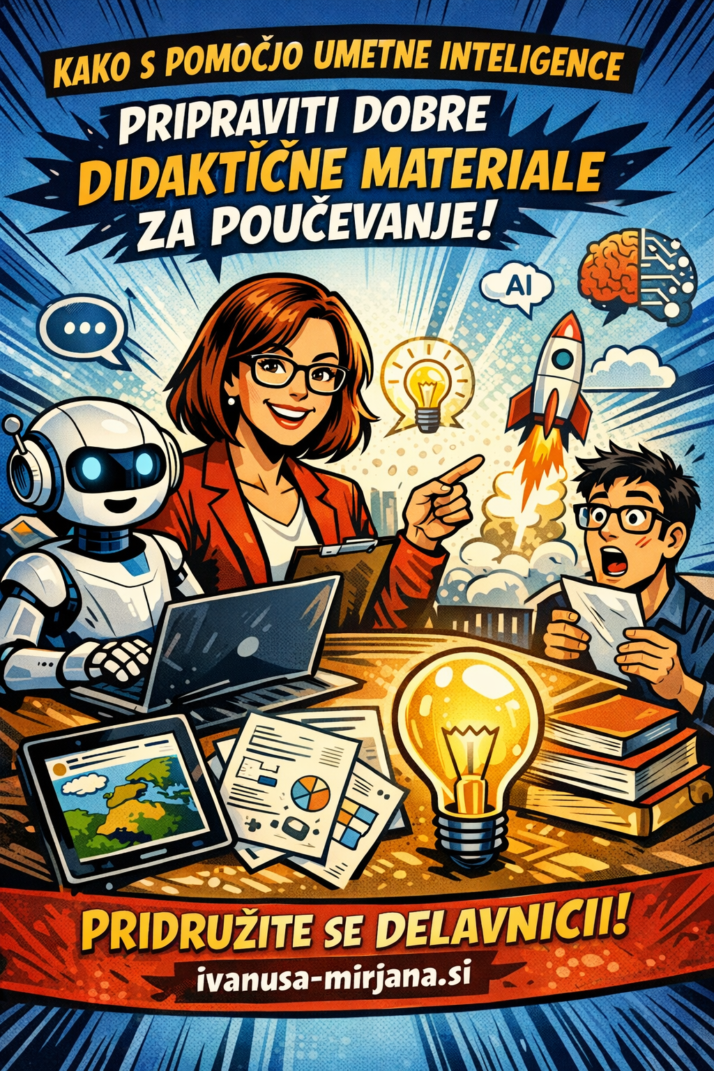Vsebina · Umetna inteligenca in veliki jezikovni modeli (VJM); · Uporaba VJM v pedagoškem procesu; · Primeri besedilnih ukazov - priprava uvoda za učno uro; · Primeri besedilnih ukazov skozi didaktične taksonomije (Bloom in revidirani Bloom); · Uporaba VJM pri pripravi dobrih besedilnih ukazov – promptov (v kontekstu ostalih novejši didaktičnih taksonomij); · Deljenje dobrih primerov – priprava vsebin za končni plakat o določeni tematiki; · Primeri besedilnih ukazov-promptov za pripravo didaktičnih materialov (katalog znanj za posamezni predmet); · Uporaba VJM pri pripravi posameznih sklopov učnih vsebin – učne metode in aktivno in kreativno medpredmetno sodelovanje in povezovanje učnih vsebin ter različne vrste poučevanja; · Uporaba VJM pri pripravi načinov in vsebin za preverjanje znanja ; · Kako naprej kot učitelj? · Kako naprej kot šola? · Zaključek webinarja in plan aktivnosti za vsakega posameznika. |